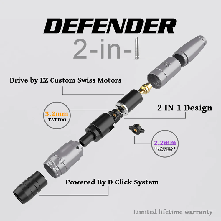 به دنبال دستگاه تاتویی هستید که هم ظریف و هم قدرتمند باشد؟ دستگاه پن تاتو دیفندر، محصولی جدید از کمپانی EZ آمریکا، تمام انتظارات شما را برآورده میکند. این دستگاه دو کاره، برای تاتو بدن و صورت ایدهآل است و با موتور سوئیسی قدرتمند و بدنهای سبک، تجربهای بینظیر از تاتو را برای شما رقم میزند.