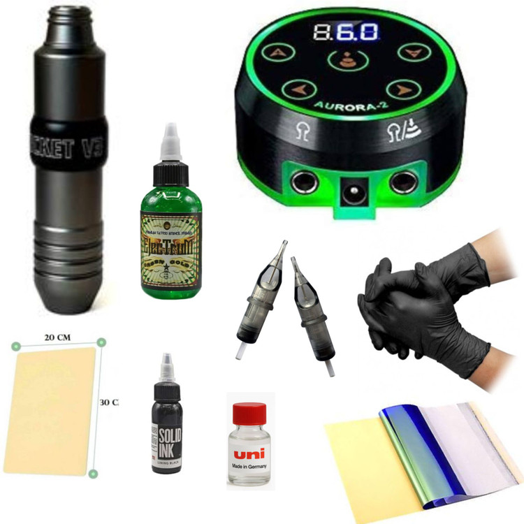 محتویات پک کامل دستگاه تاتو پن راکت ۳