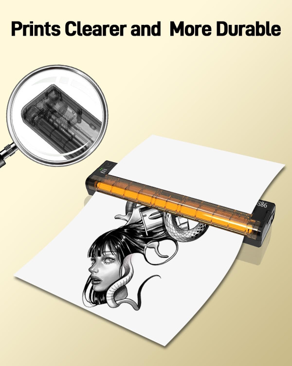 -پرینتر تاتو ATS886 دستگاه چاپگر تاتو قابل حمل ATS886 برای هنرمندان تاتو و لوازم خالکوبی مبتدی، سازگار با گوشی هوشمند/کامپیوتر